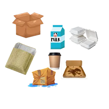 - Cardboard contaminated with food, grease or oil