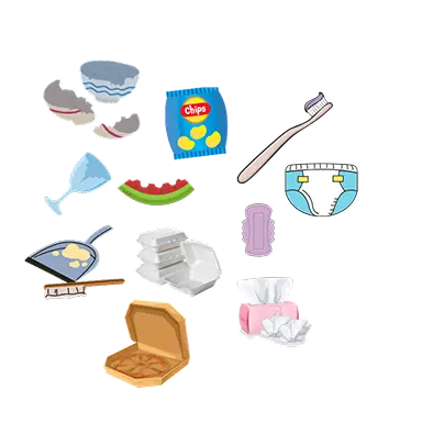 - Non-recyclable plastics e.g cling wrap, chip packets & plastic straws